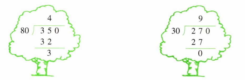 改正:$\begin{array}{r} 4\\ 80\enclose{longdiv} {350}\\ 320\\ \hline 30\end{array} $