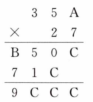 A、B、C 代表不同的数字,当它们分别等于几可满足右面的竖式。