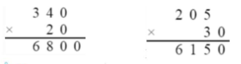 $340×20= $ $205×30= $ $407×32= $ $308×19= $