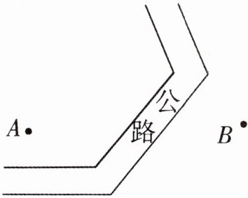 3. 为方便派送快递,要在 $ A $、$ B $ 两点各建一个快递站,从这两个快递站各修一条离公路最近的小路,应该怎么修?请在图上画出来。