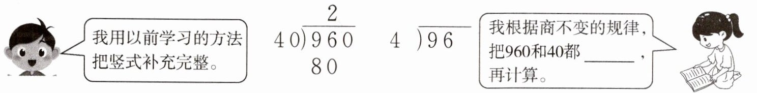1. 用不同的方法计算 $960÷40$ 的商。