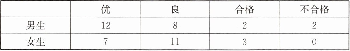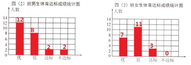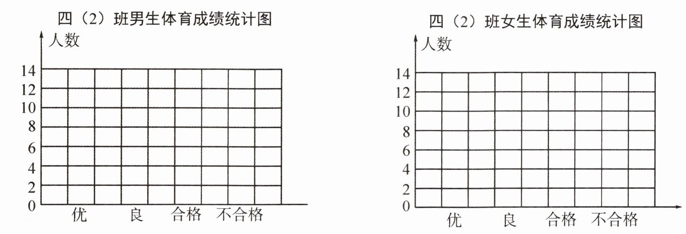 2. 下面是四(2)班学生体育成绩统计表,请根据统计表绘制条形统计图,并回答问题。