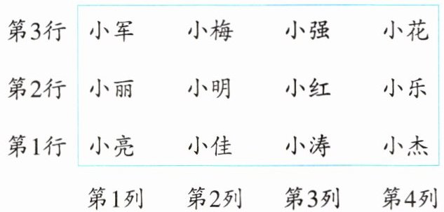)。(3,4)可以表示班里(第3列第4行同学(以上答案需根据实际班级座位情况调整)