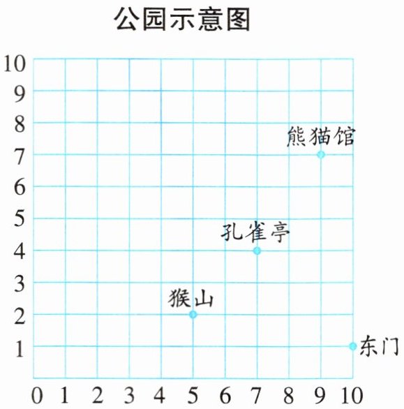 (2)暑假的一天,小明一家按以下顺序在公园游览:(10,1)→(5,2)→(7,4)→(9,7)→(6,6)→(3,8)→(2,10)。请写出小明一家的游览路线。