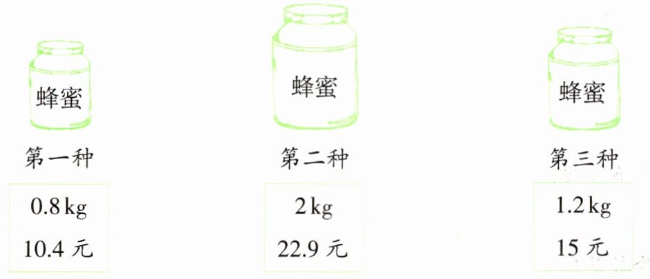 第三种蜂蜜每千克价格:$15÷1.2 = 12.5$(元/kg);