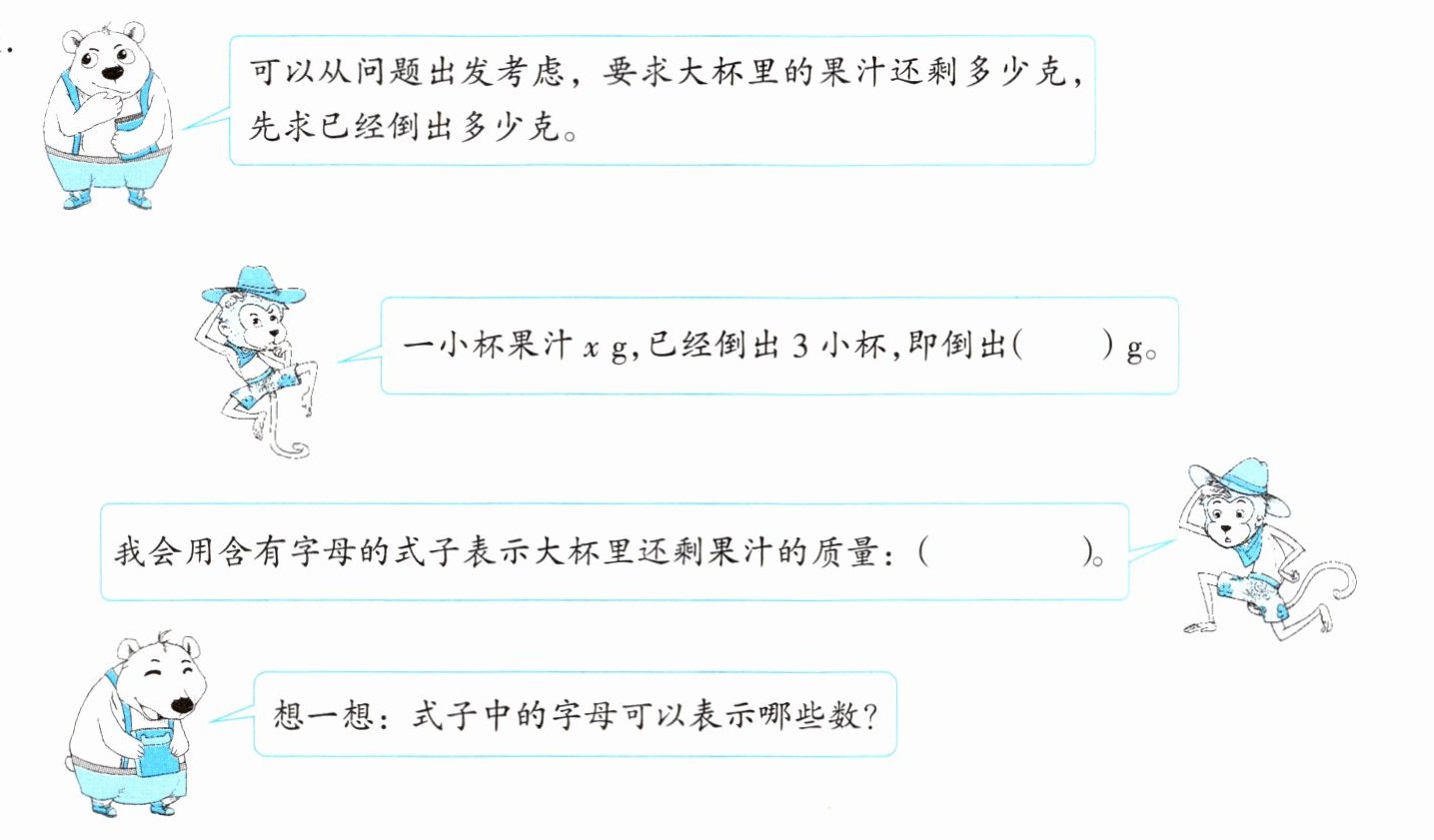 我会用含有字母的式子表示大杯里还剩果汁的质量:(