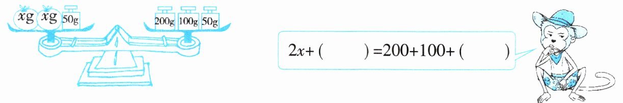 1. 如果在天平两边同时加上一个 $50g$ 的砝码,天平还会平衡吗?观察下图,并用等式表示。