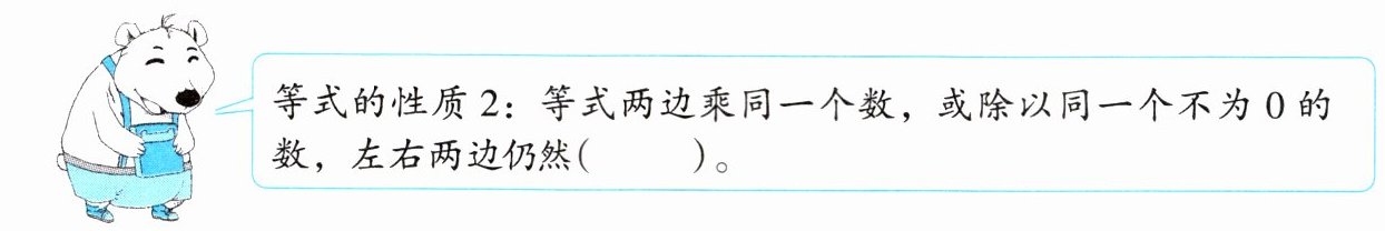 )。等式的性质 2:等式两边乘同一个数,或除以同一个不为 $0$ 的数,左右两边仍然(