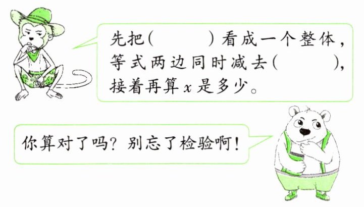 3. 想一想,在解含有两步计算的方程时,要注意些什么?