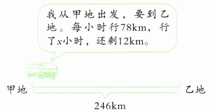 (2)根据路程 = 速度×时间,已行驶路程为$78x$千米,总路程为$246$千米,剩余$12$千米,可列方程: