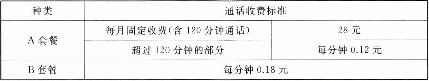 7. 某移动公司为了满足广大市民的不同需求,推出两种手机付费套餐,收费标准如下。