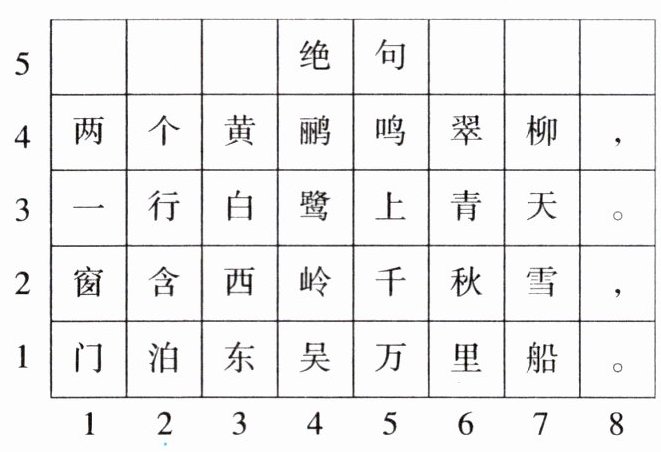 2.用数对表示诗中汉字的位置。