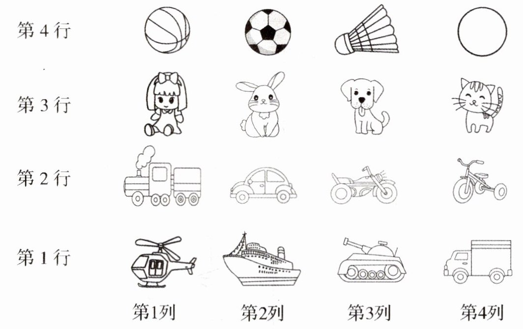 5.同学们玩套圈游戏,下面是各种物品摆放的位置。