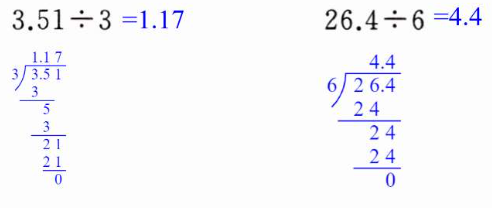 $15.3÷9$ $36.5÷5$ $3.51÷3$ $26.4÷6$