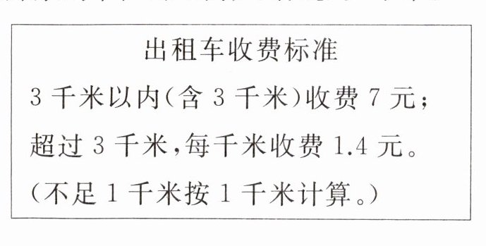 4. 李老师从家乘出租车去学校,付车费 11.2 元。李老师家到单位的距离大约是多少千米?