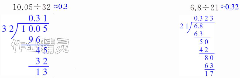 2. 列竖式计算下面各题,按要求取商的近似值。