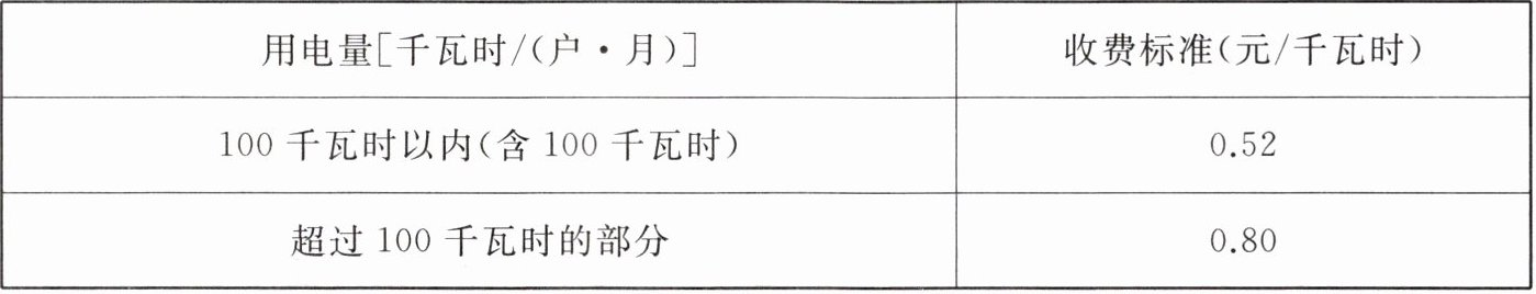 6.100×0.52=52(元) 61.6-52=9.6(元) 9.6÷0.8=12(千瓦时) 100+12=112(千瓦时)