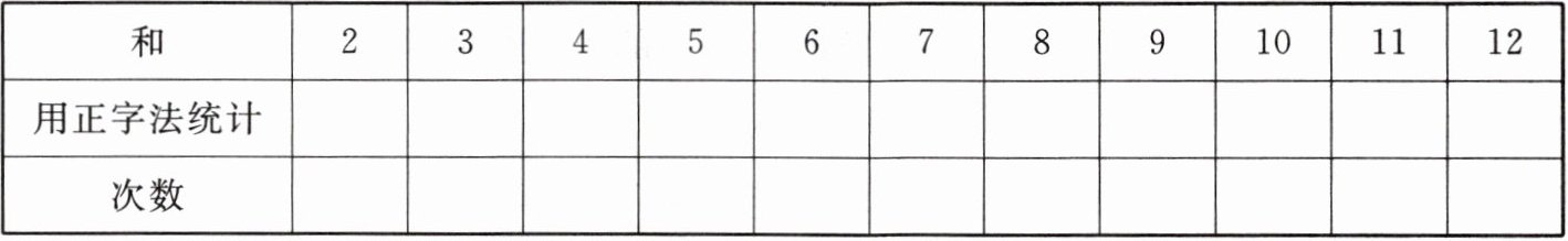 (1) 拿出两个骰子,掷 30 次,完成下面的统计表。