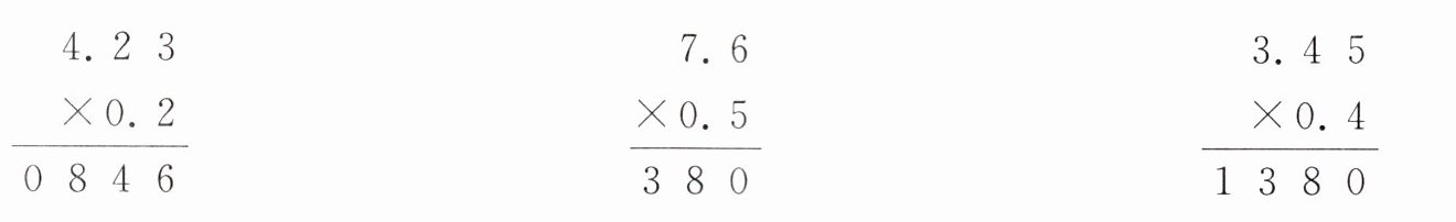 $\begin{array}{r}4.23 \\ × 0.2 \\ \hline 0.846\end{array} $
