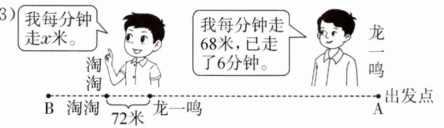 (3)淘淘走的路程 龙一鸣走的路程 淘淘比龙一鸣多走的路程 6x-68×6=72