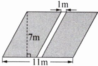 4. 如图,一块平行四边形的草坪中间有一条宽1m的石子路,如果铺$1m^{2}$草坪需要15元,铺好这块草坪大约需要多少钱?(图中平行四边形草坪底11m,高7m,中间石子路宽1m)
