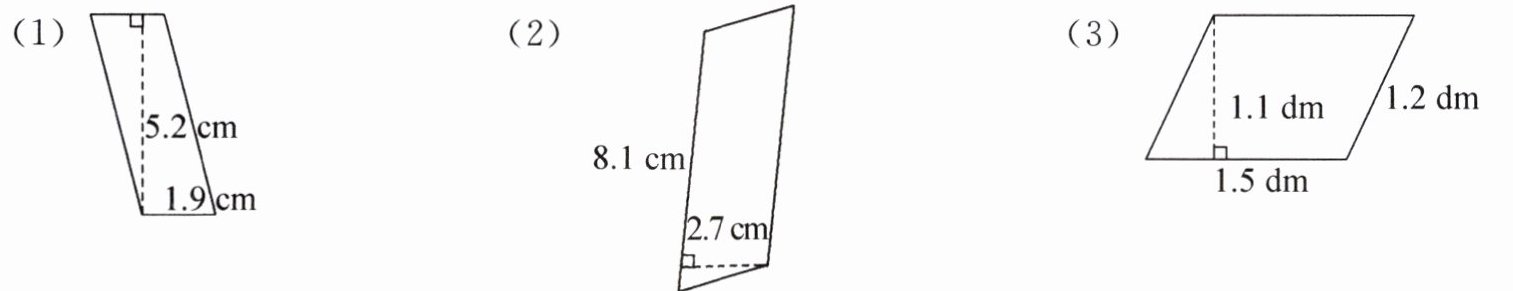 2. 计算下面每个平行四边形的面积。