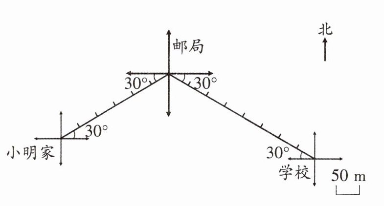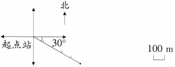 (2)公共汽车从终点站向北偏西45°方向300米后,向西行驶600米,最后向西偏北30°方向行驶500米,到达起点站。
