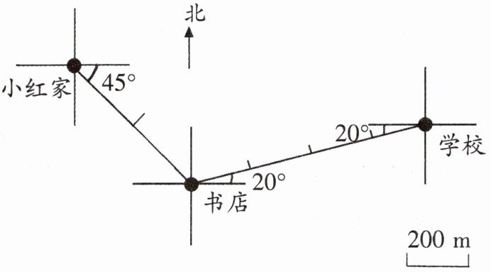 (1)小红从家出发向( )方向走( )m到书店,再向( )方向走( )m到学校。