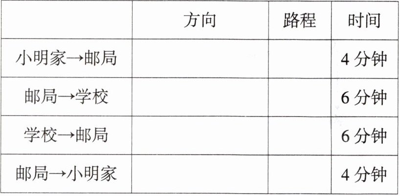 (1)根据上面的描述,把公共汽车行驶的路线图画完整。