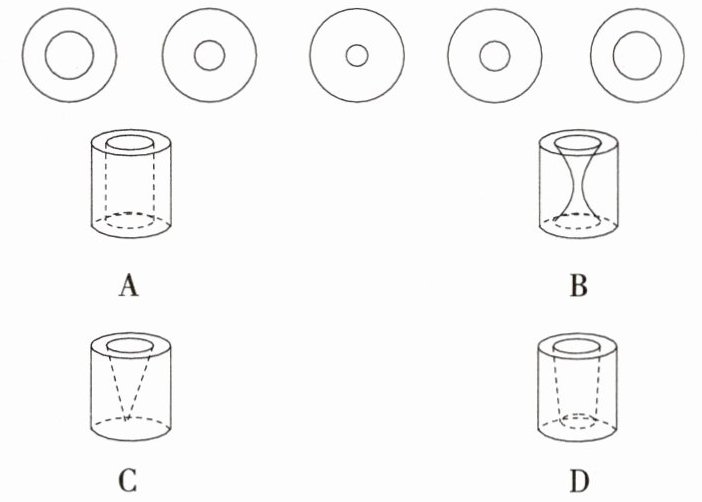 3. 一个物体的外形是圆柱,但不清楚它的内部结构,现在用一组水平的平面去截这个物体,从上至下的五个截面依次如图所示,则这个物体可能是(