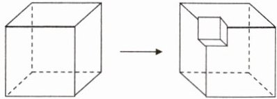 5. 如图,从一个棱长为3cm的正方体的一顶点处挖去一个棱长为1cm的正方体,则剩余部分的体积和表面积分别是(