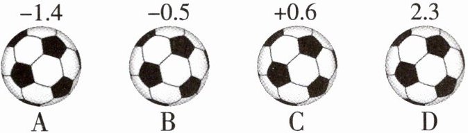 3. 如图,为了检测 4 个足球的质量,规定超过标准质量的克数记为正数,不足标准质量的克数记为负数,则下列选项中最接近标准质量的是(
