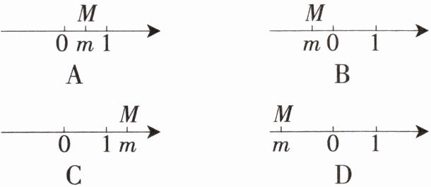 4. 若数 m 在数轴上对应的点为 M,满足$|m|>1且m<0$,则下列数轴表示正确的是(