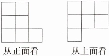 7. 用小立方体搭成一个几何体,使它从正面和上面看到的图形如图所示,搭建这样的几何体最多要几个小立方体?最少要几个小立方体?并画出最多时从左面看到的图。
