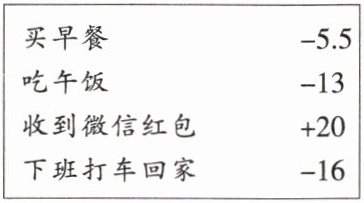 1. 如图是小杰的记账本上某天的收支账单(正数表示收入,负数表示支出),已知小杰的钱包里原本有$35$元,则这天过后小杰的钱包里还剩(