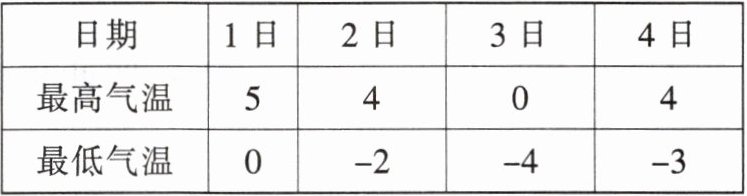 1. 某地今年 1 月 1 日至 4 日每天的最高气温与最低气温如下表: