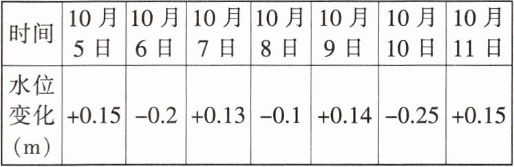 小明去一水库进行水位变化的实地测量,他取警戒线作为 0m,记录了该水库一周内的水位变化情况(测量前一天的水位达到警戒水位,单位:m):