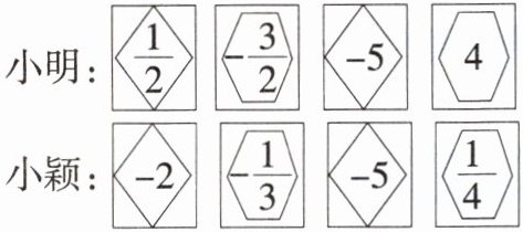 解:小颖获胜.小明:$\frac{1}{2}-(-\frac{3}{2})+(-5)-4=-7$.小颖:$-2-(-\frac{1}{3})+(-5)-\frac{1}{4}=-\frac{83}{12}$.因为$-7<-\frac{83}{12}$,所以小颖获胜.