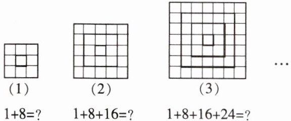 2. 观察下列图形及图形所对应的算式,根据你发现的规律计算$1 + 8 + 16 + 24 + … + 8n$($n$是正整数)的结果为(