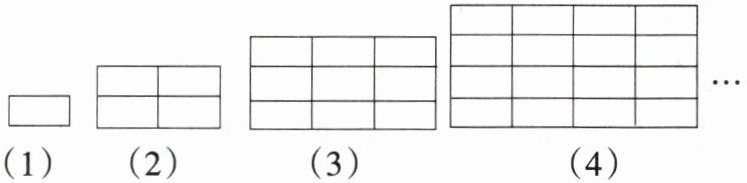 1. 下列图形都是由同样大小的长方形按一定的规律组成的,其中第(1)个图形的面积为$2cm^{2}$,第(2)个图形的面积为$8cm^{2}$,第(3)个图形的面积为$18cm^{2}$……则第(10)个图形的面积为(