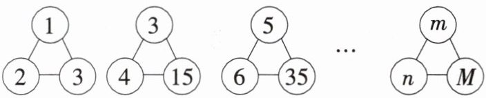 2. 下列各图形中的三个数之间均具有相同的规律.根据此规律,图形中$M与m$,$n$的关系是(