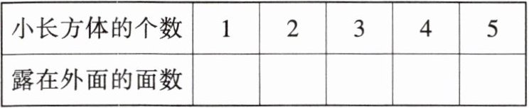 解:小长方体的个数 1 2 3 4 5 露在外面的面数 5 8 11 14 17 若有n个小长方体,则露在外面的面数是3n+2.