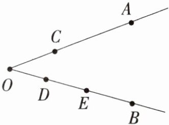 6. $ OA $,$ OB $ 是两条射线,$ C $ 为 $ OA $ 上一点,$ D $,$ E $ 是 $ OB $ 上两点,则图中共有