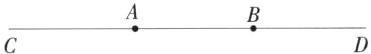 2. 为比较两条线段 $AB$ 与 $CD$ 的大小,小明将点 $A$ 与点 $C$ 重合使两条线段在一条直线上,点 $B$ 在 $CD$ 的延长线上,则(