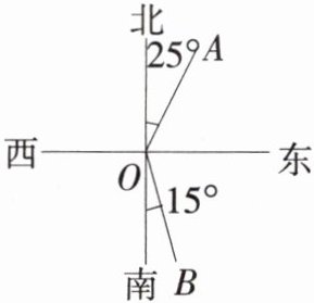 6. 如图,OA是表示北偏东25°方向的一条射线,射线OB是表示