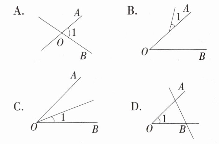 3. 下列四个图中,能用∠1,∠AOB,∠O三种方法表示同一个角的是 (