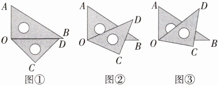 2. 如图(图①)是由一副三角尺拼成的图案,其中三角尺 $ AOB $ 的边 $ OB $ 与三角尺 $ OCD $ 的边 $ OD $ 紧靠在一起。