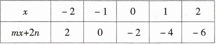 4. 整式 $ mx + 2n $ 的值随 $ x $ 的取值不同而不同,下表是当 $ x $ 取不同值时对应的整式的值,则关于 $ x $ 的方程 $ mx + 2n = -2 $ 的解为 $ x = $