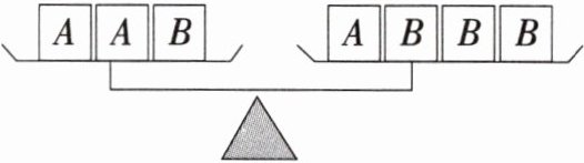 1. 如图,处于平衡状态的天平中,若每个 $ A $ 的质量为 $ 20g $,则每个 $ B $ 的质量为(