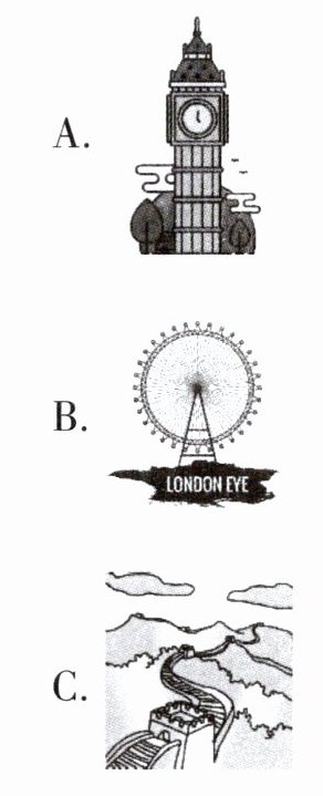 Ⅲ. 选择与句意相符的图片,将序号填入括号内。